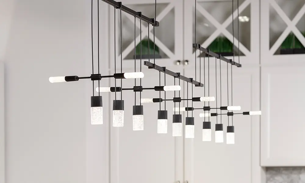 Lighting can have a big impact in your kitchen and bathroom. You may have a great window or skylight for fantastic natural light during the day, but the lighting you choose for overcast days, evenings, and early mornings can greatly affect the usefulness and aesthetics of your space. You may like to read in the tub with a glass of wine and need a great pendant or chandelier to illuminate your relaxing time, or a pair of pendants for your mirror as you prepare to start each day. Don’t forget the kitchen, where the perfect lighting piece over an island or table can make a subtle or dramatic statement, depending on your tastes.